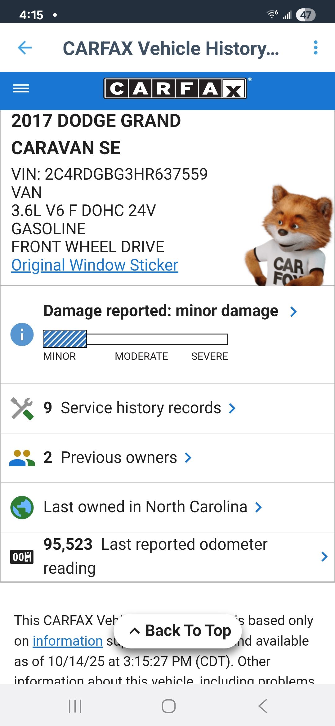 2017 Dodge Grand Caravan SE 100K miles