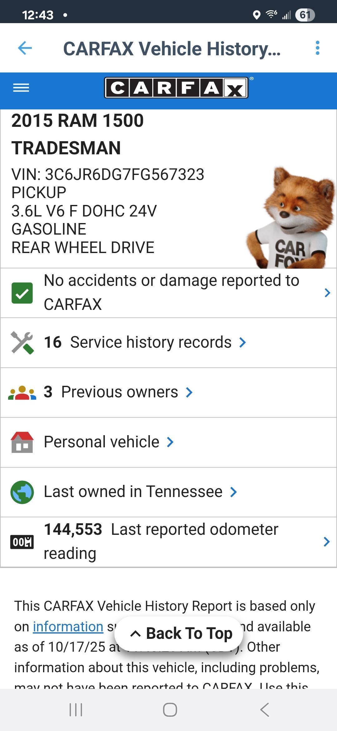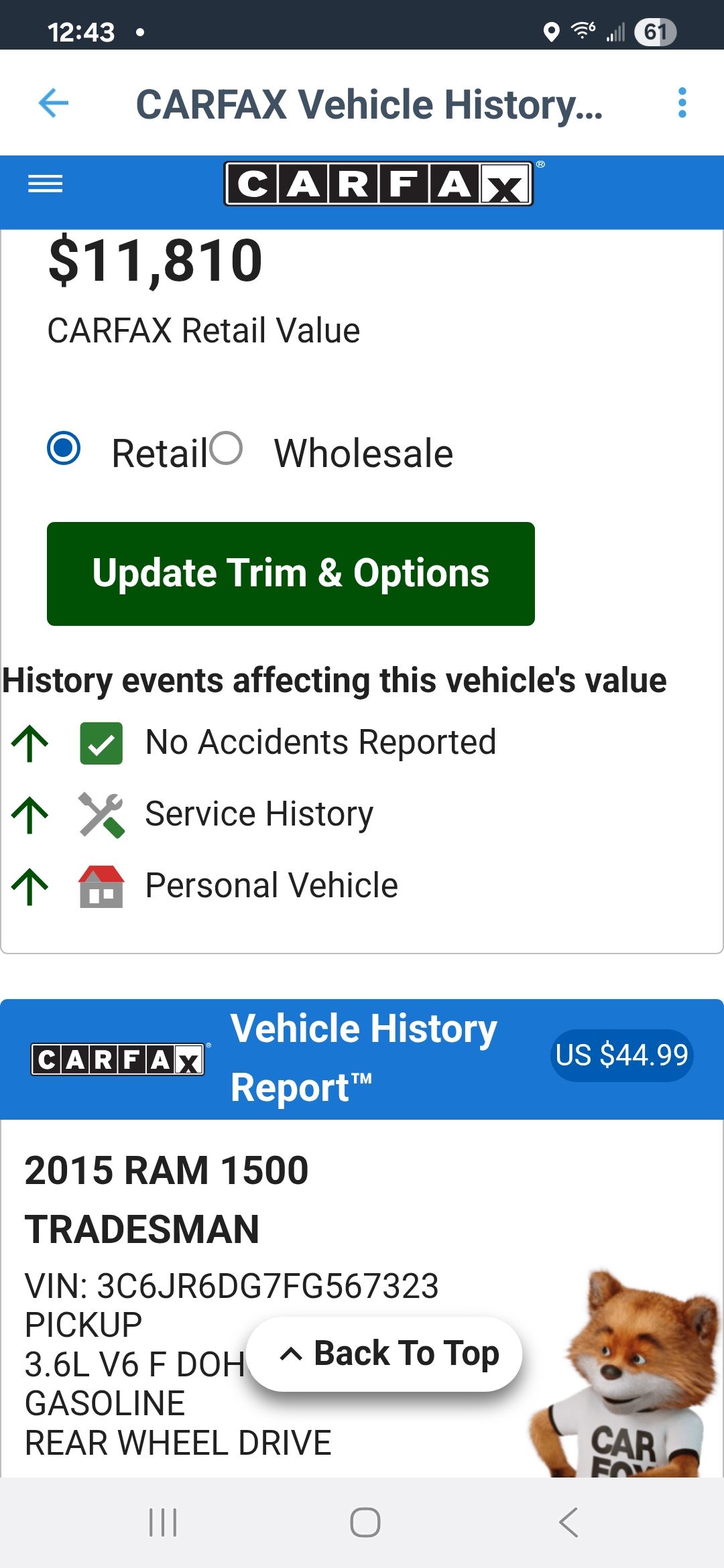 2015 Dodge Ram 2wd V-6 146k miles