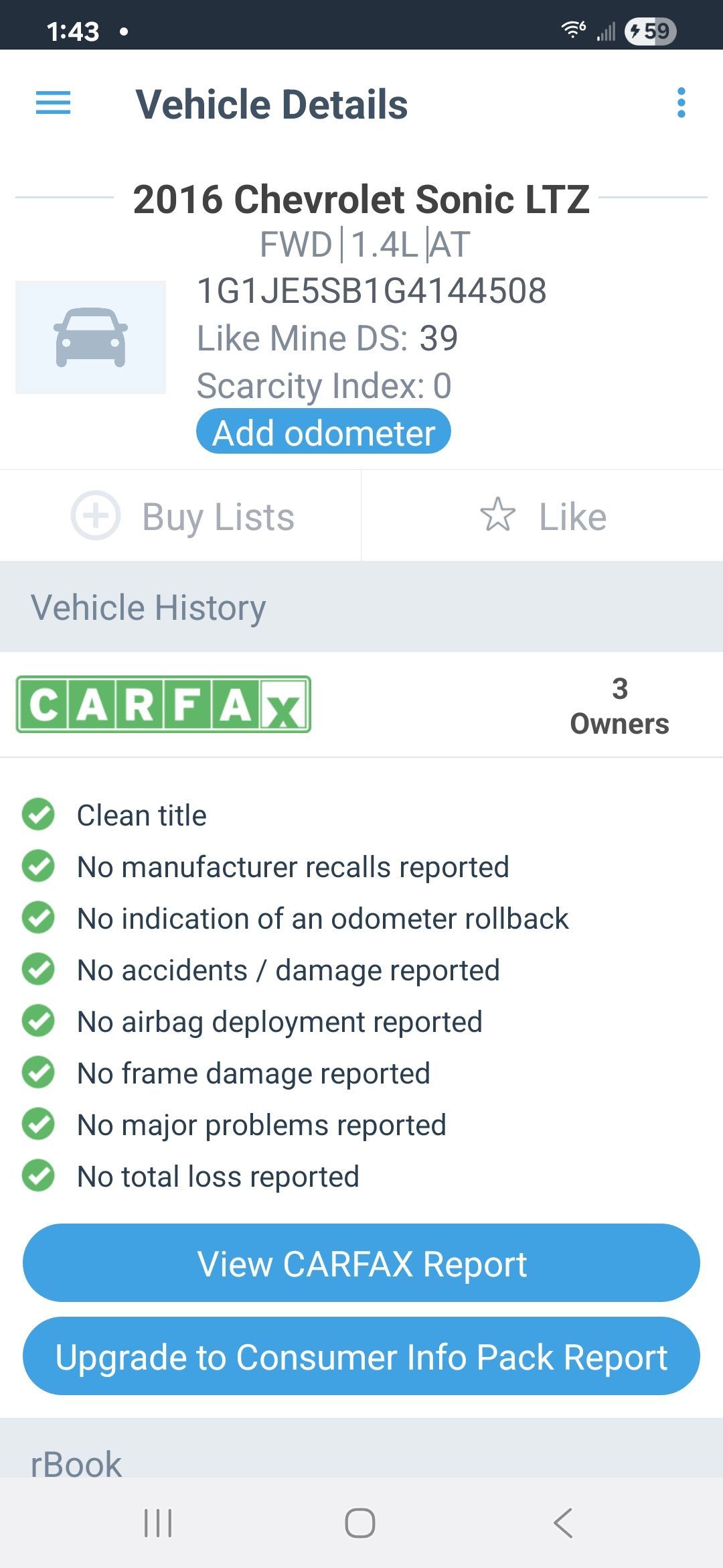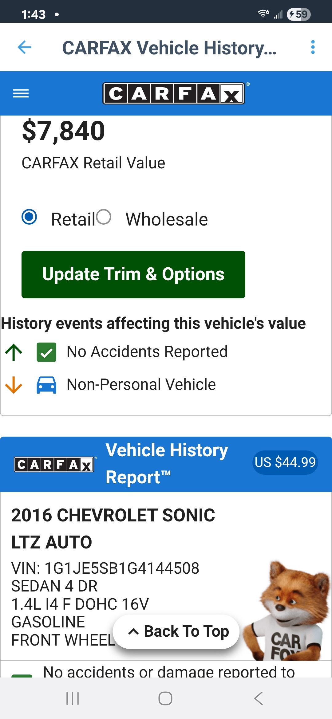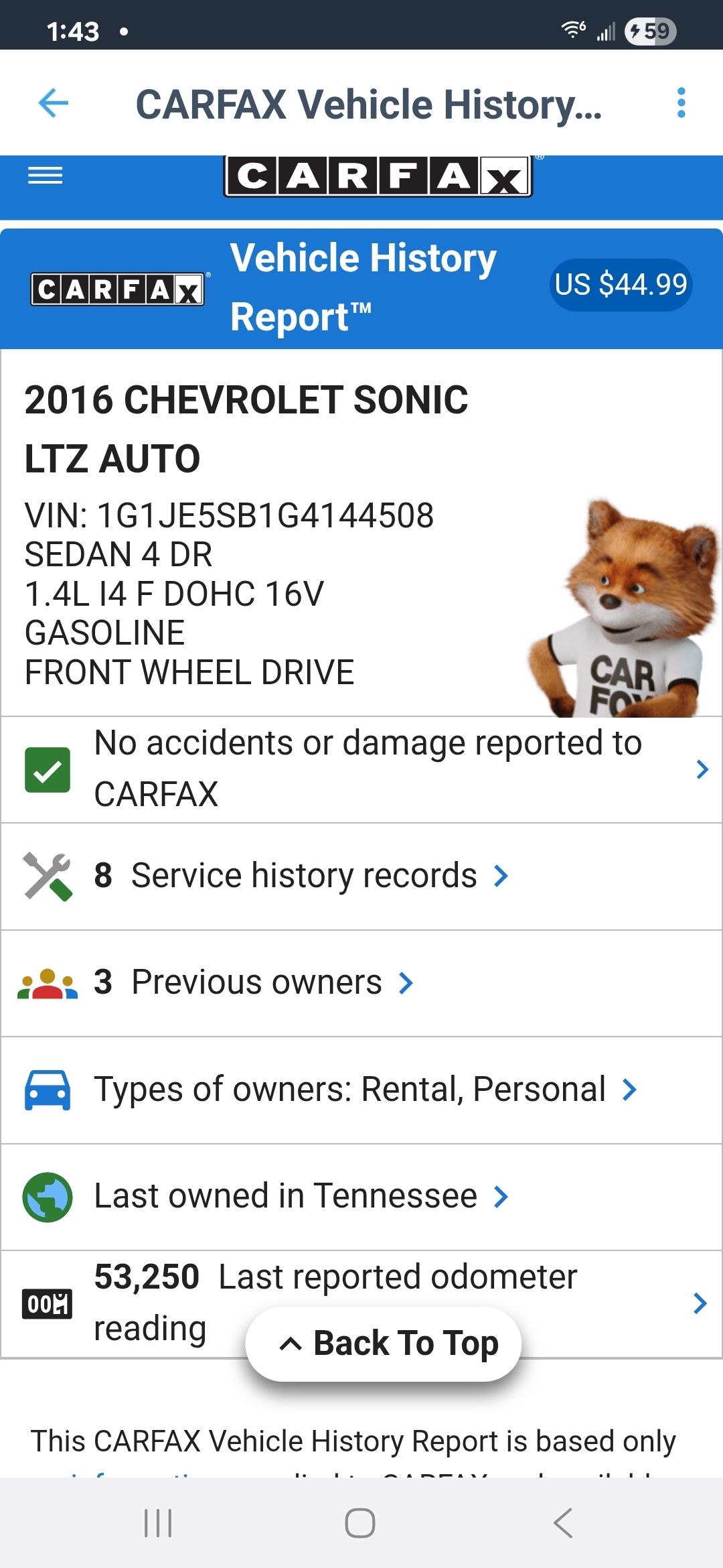 2016 Chevy Sonic 96k miles