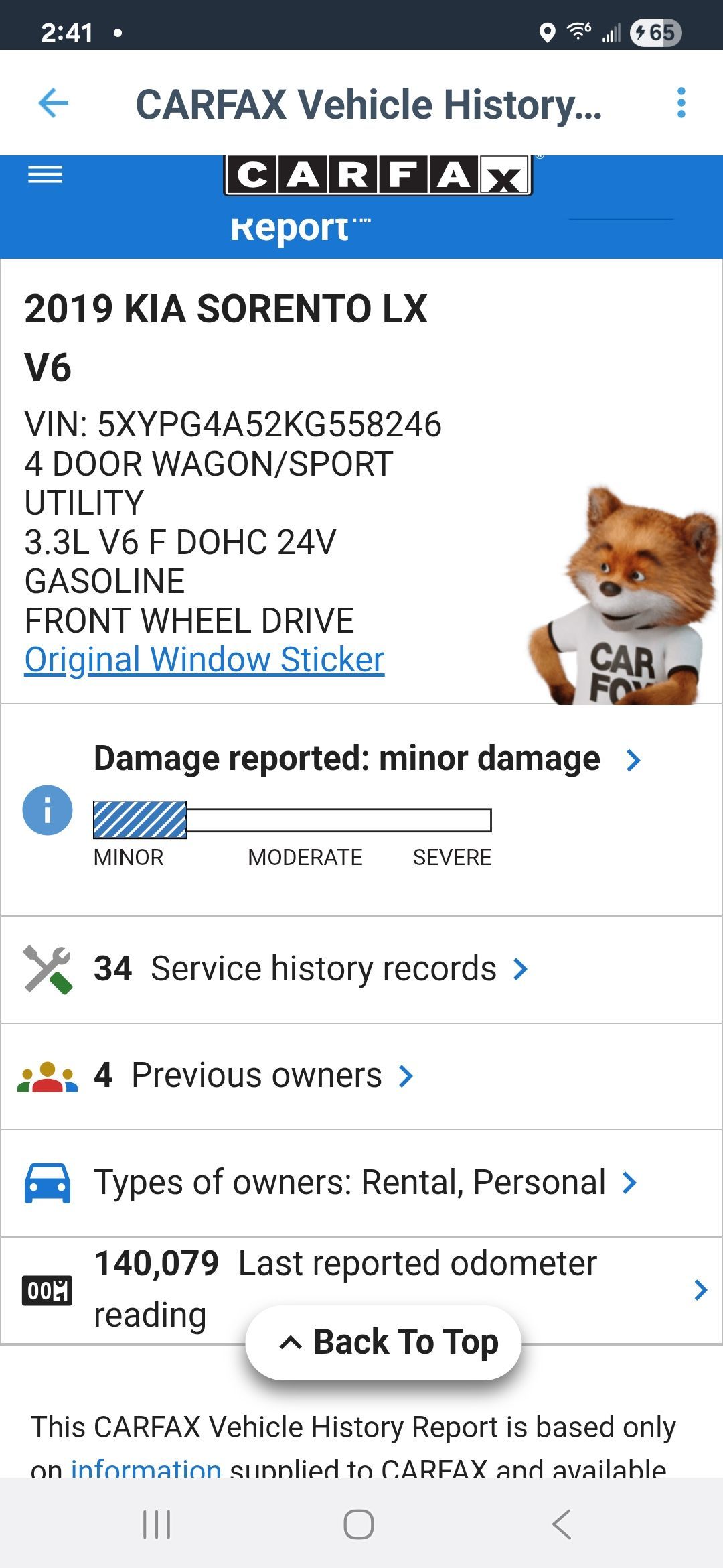 2017 Kia Sorento SV V6 131k miles