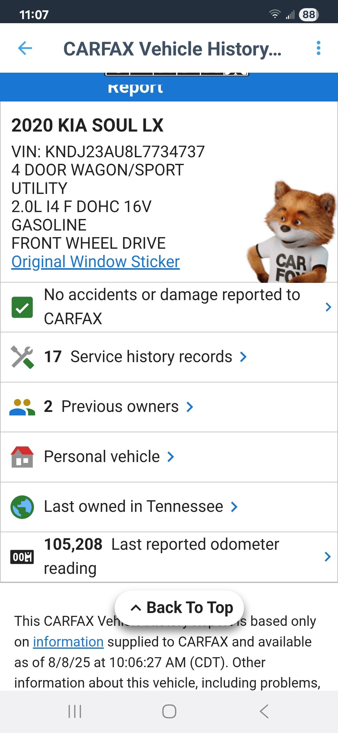 2020 Kia Soul 105k miles