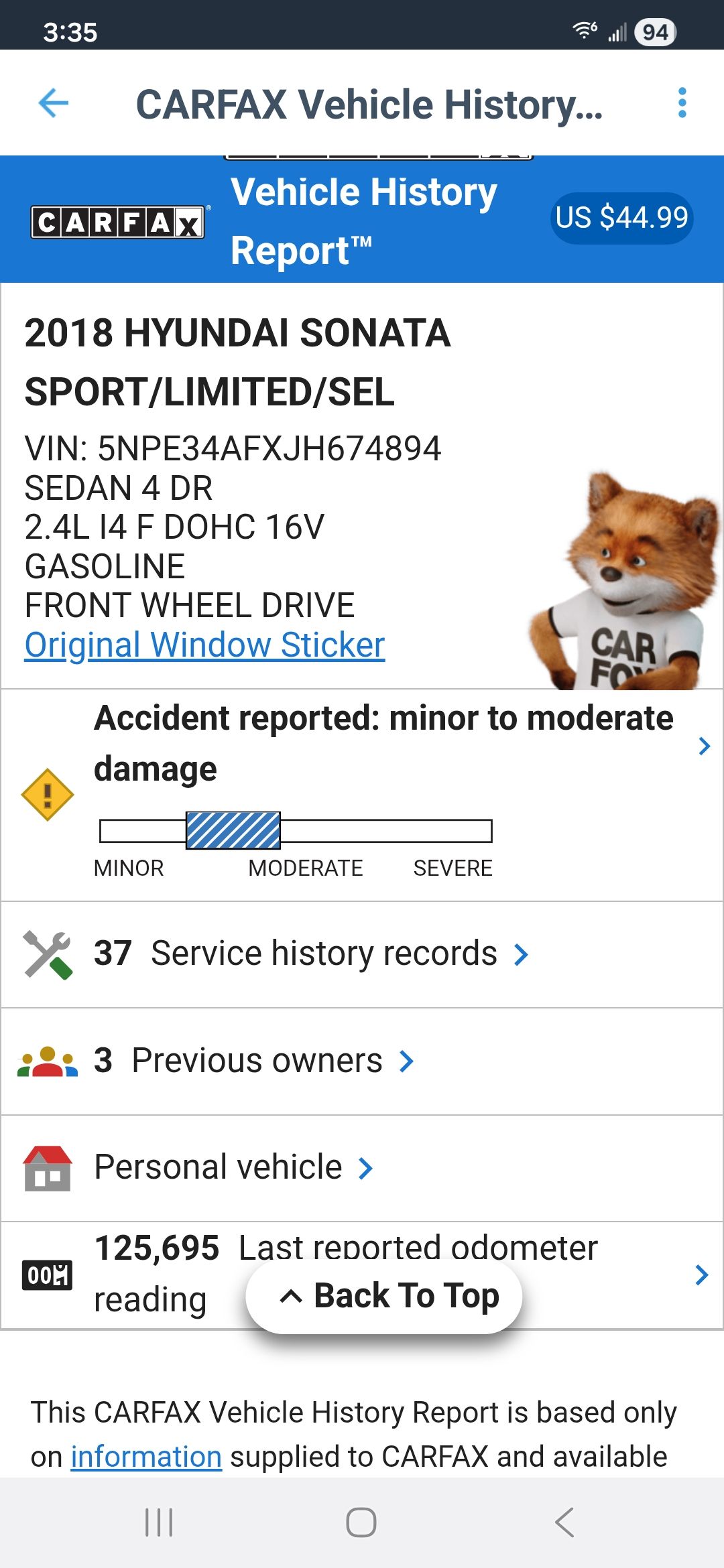 2018 Hyundai Sonata Limited 125k miles