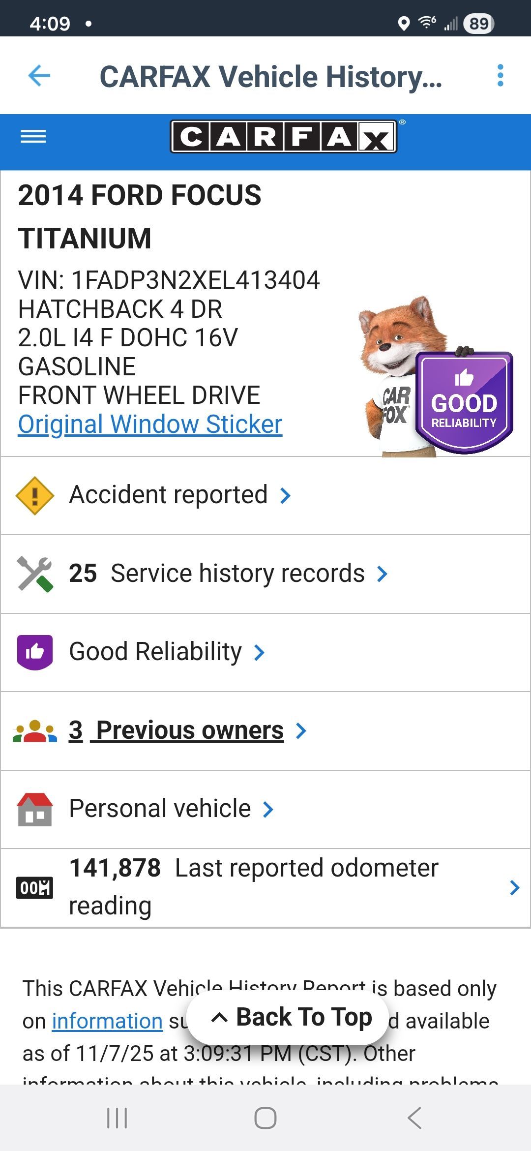 2014 Ford Focus Titanium hatchback 141k miles