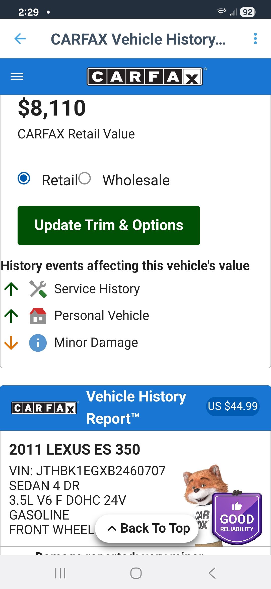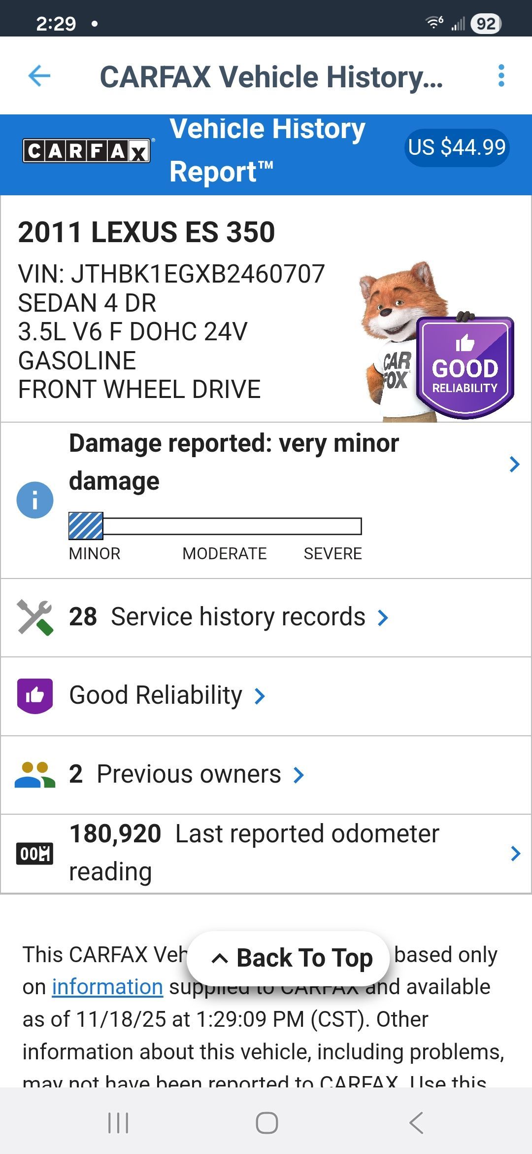2011 Lexus ES-350 180k miles