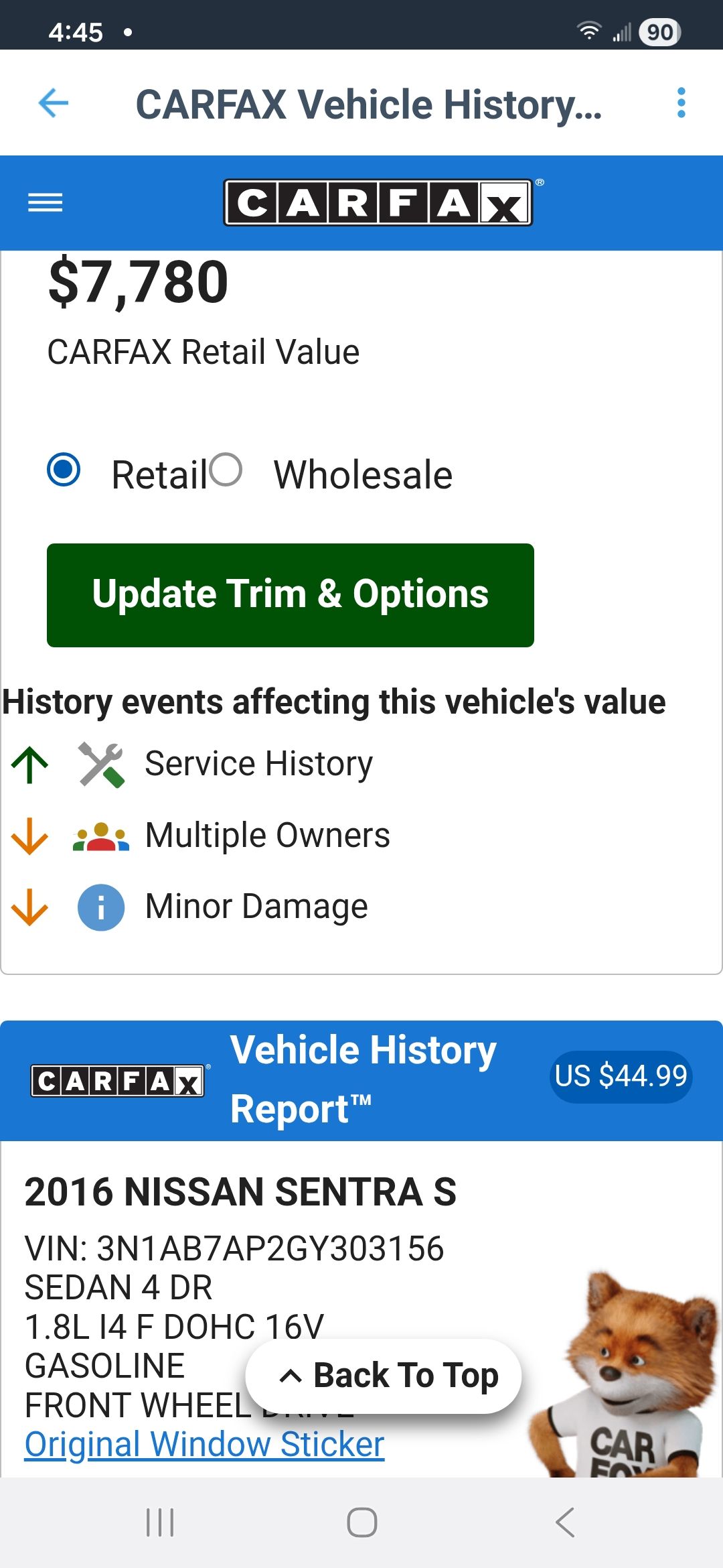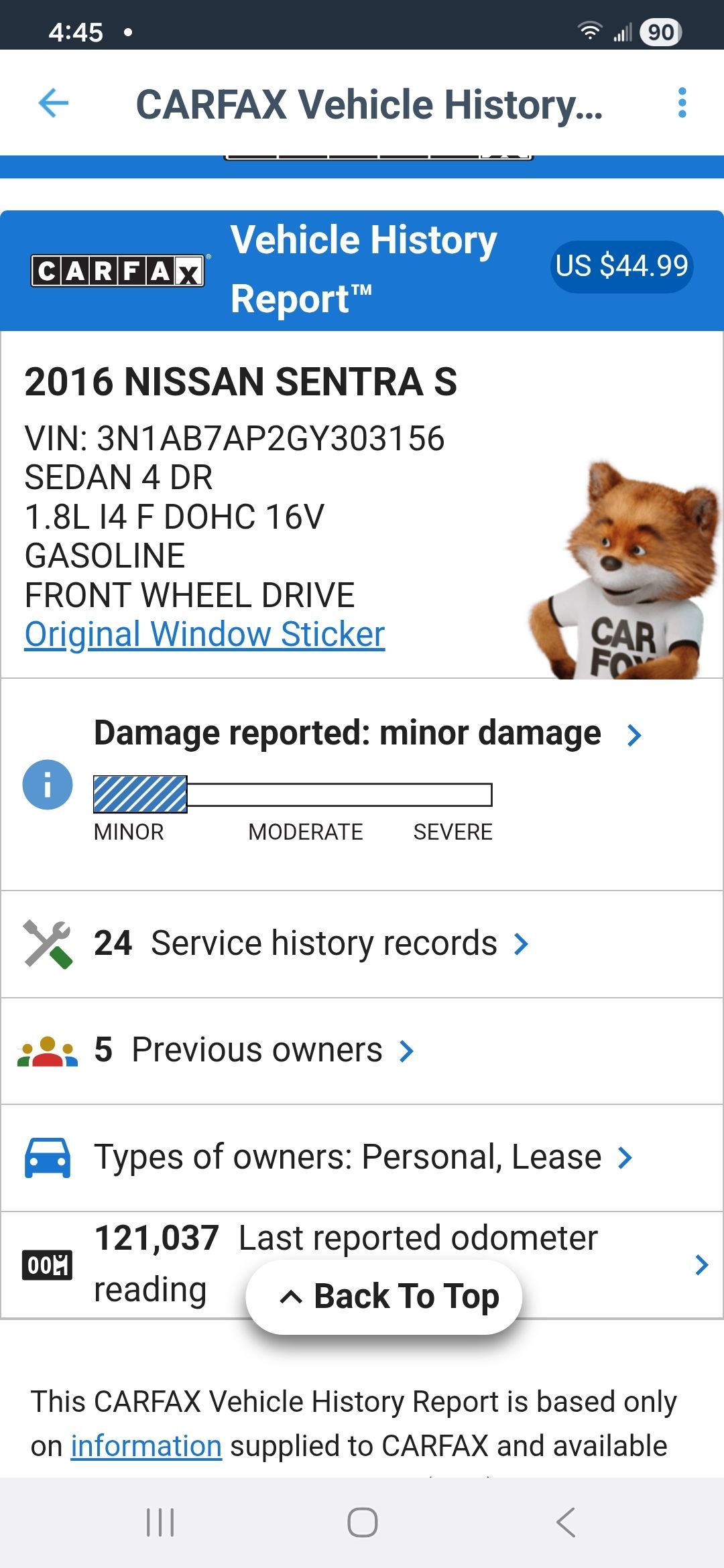 2016 Nissan Sentra 121k miles