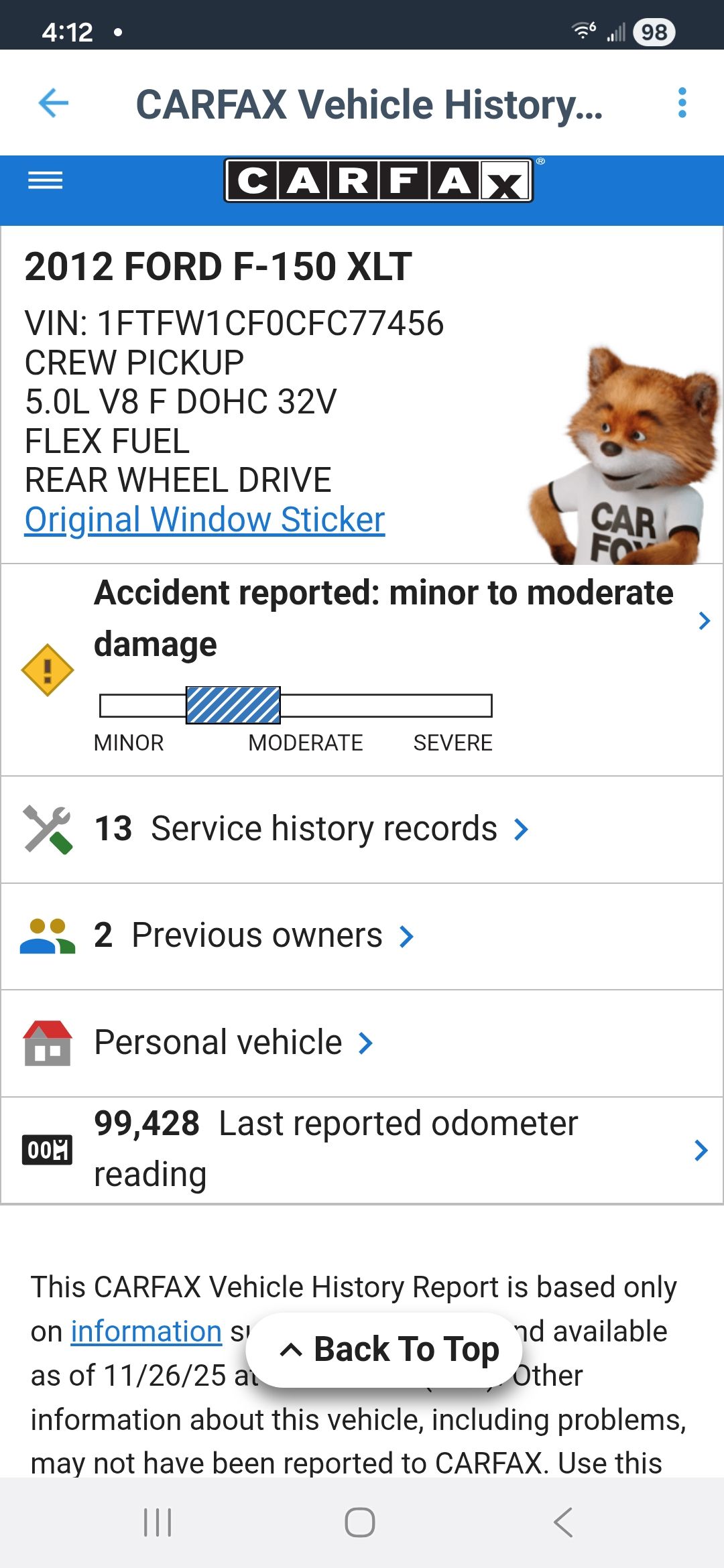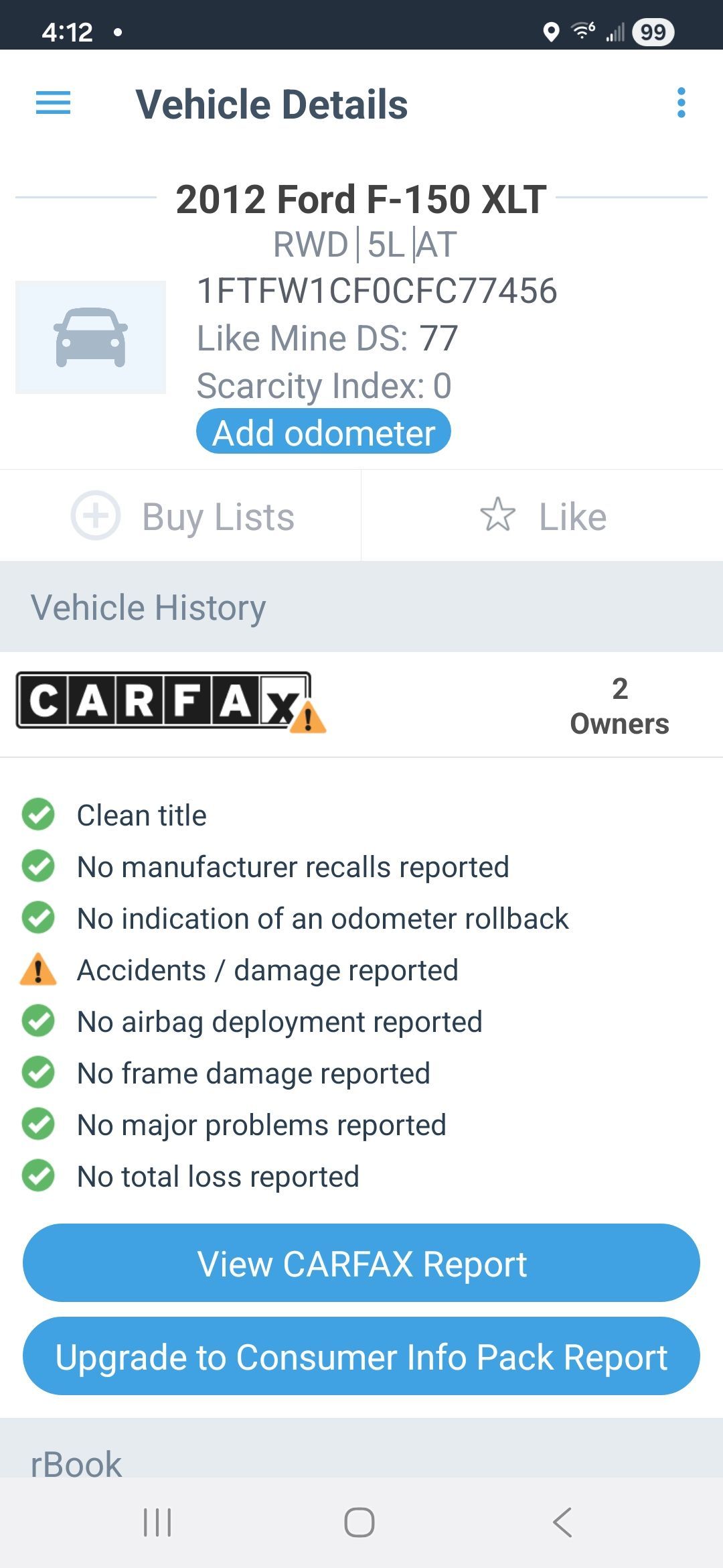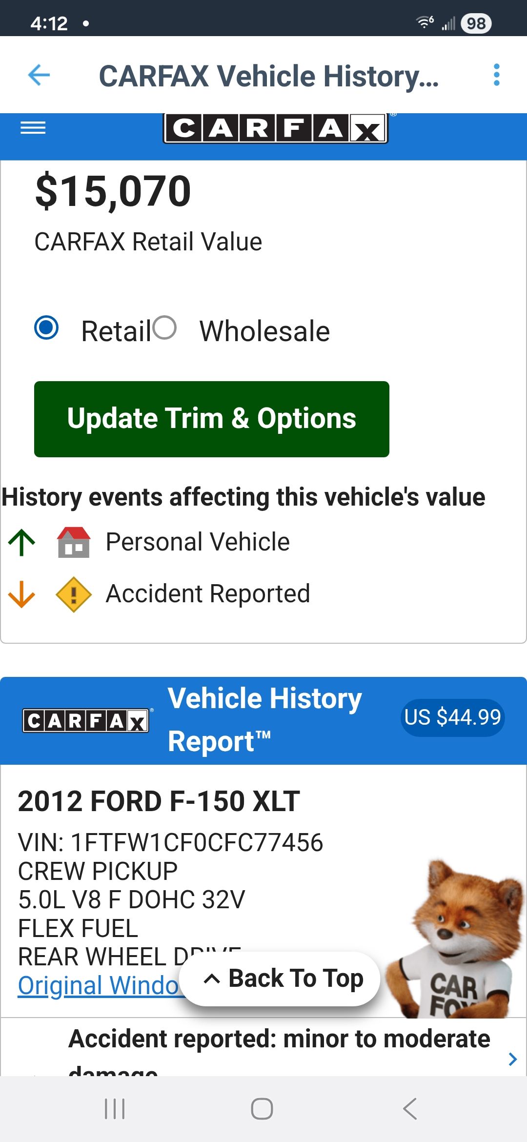 2012 Ford F-150 4dr 2wd 99k miles