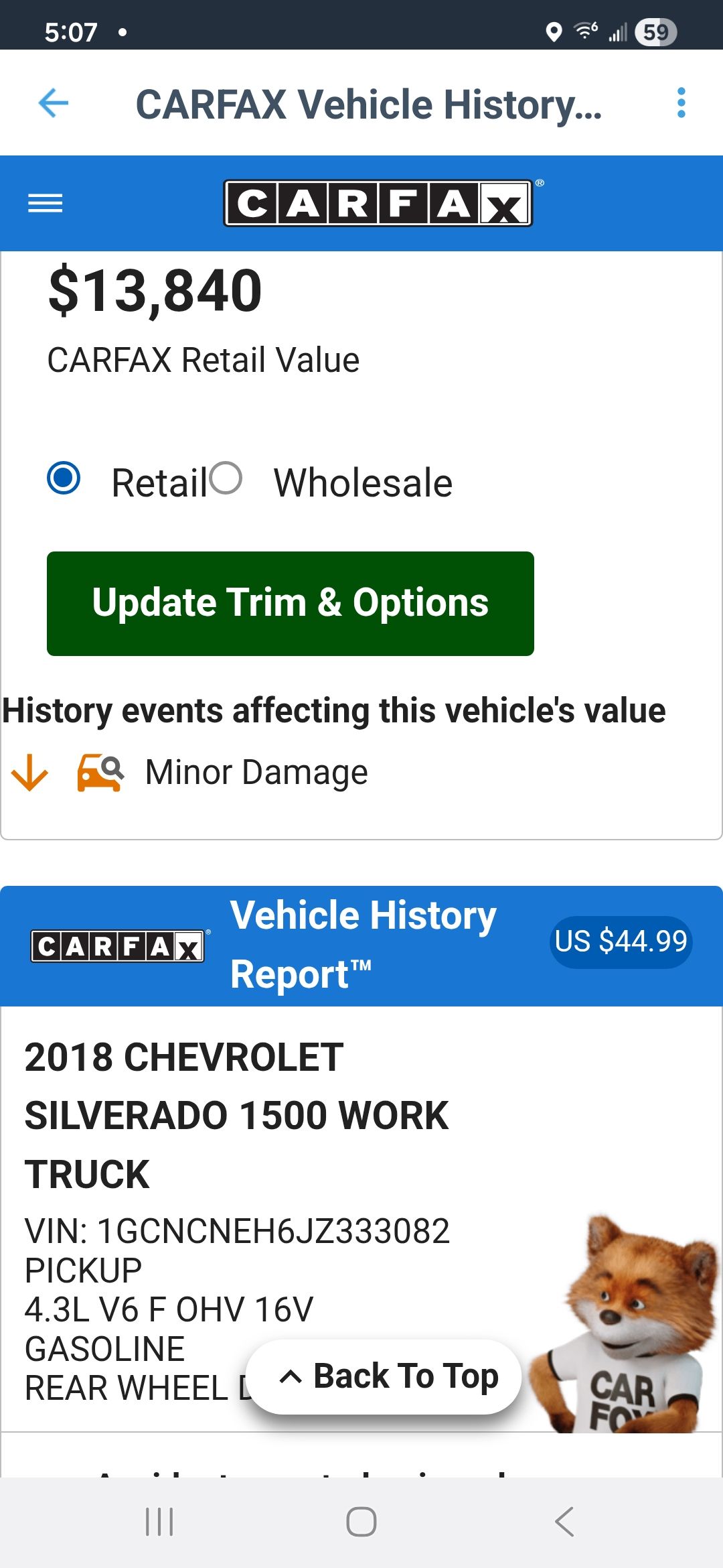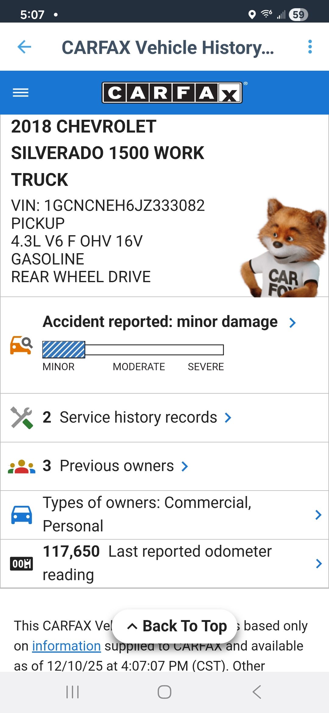 2018 Chevy Silverado 2wd V-6 117k miles